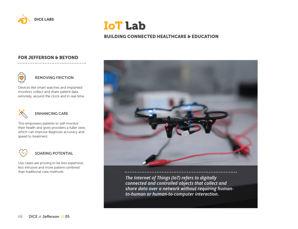 The Digital Innovation and Consumer Experience (DICE) Group designed, developed and implemented value-driven and consumer-focused solutions to transform healthcare and education in partnership with students, patients, physicians, faculty, staff, industries, governments and the communities surrounding Thomas Jefferson University and Jefferson Health. The DICE Group enabled Jefferson’s mission to improve lives by developing digital solutions that make a difference in consumer’s lives.